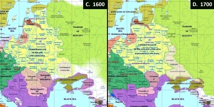 | Leathnú na Polainne (c.1600); an Úcráin agus an Rúis (c.1700) |